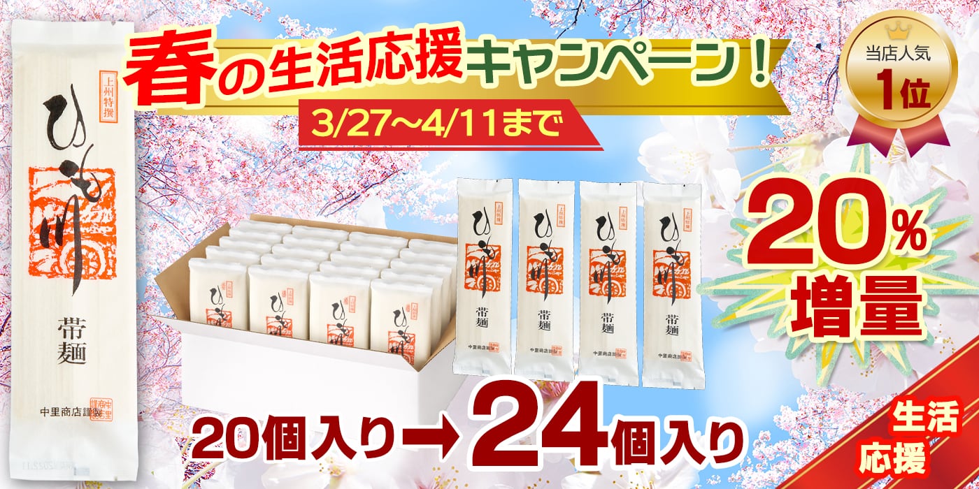 【3/27~4/11まで20%増量】うどん ひもかわうどん 帯麺 乾麺 170g×20袋(今だけ24袋)入り おっきりこみ ギフト 贈答品 ひもかわうどん 通販 人気