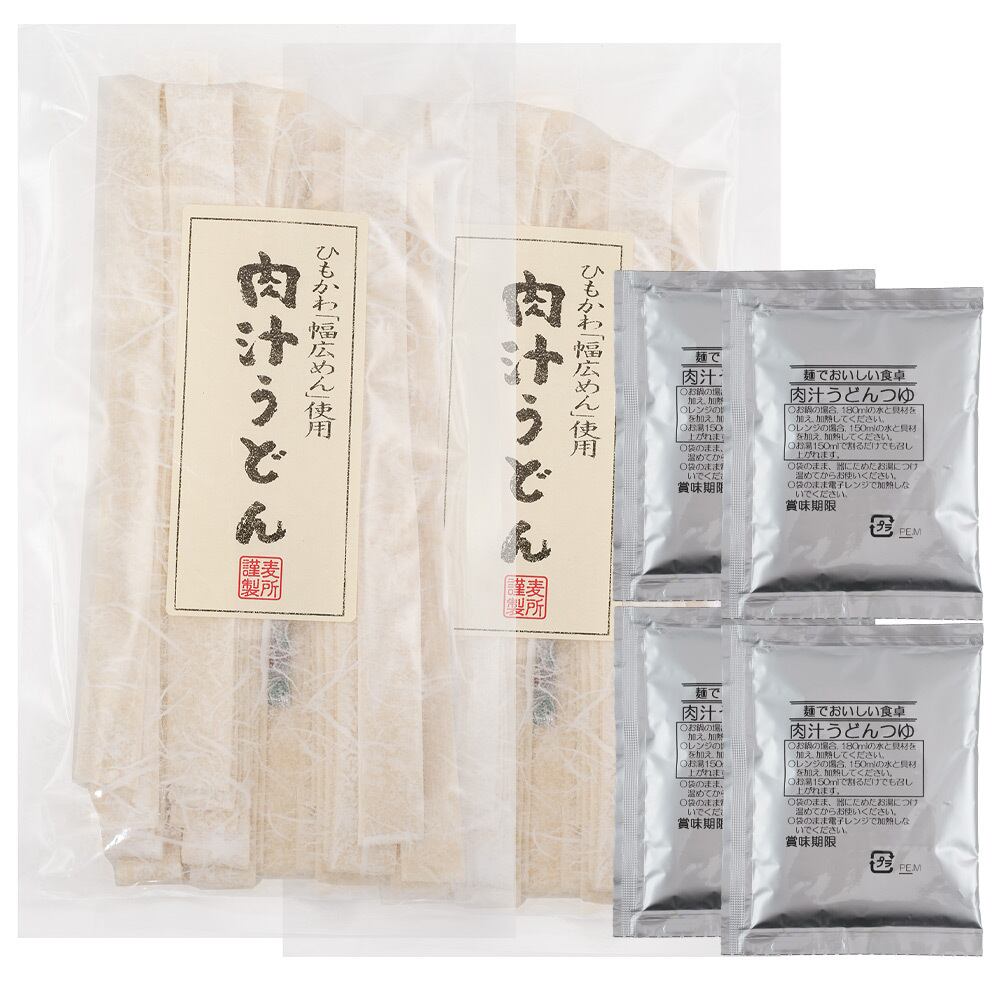 【内容】上州麺の里 半生ひもかわ260g(2人前)×2袋 肉汁×4袋