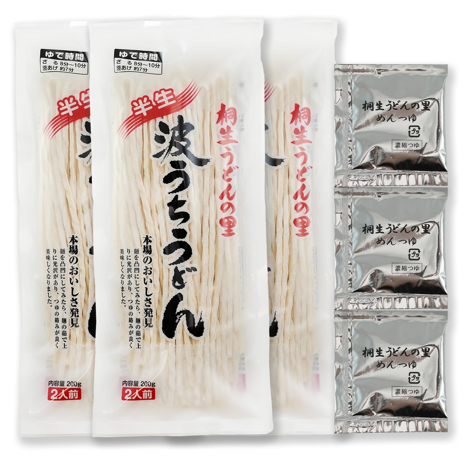 【桐生の波打肉汁うどん ねじれうどん 半生麺 200g×3袋】